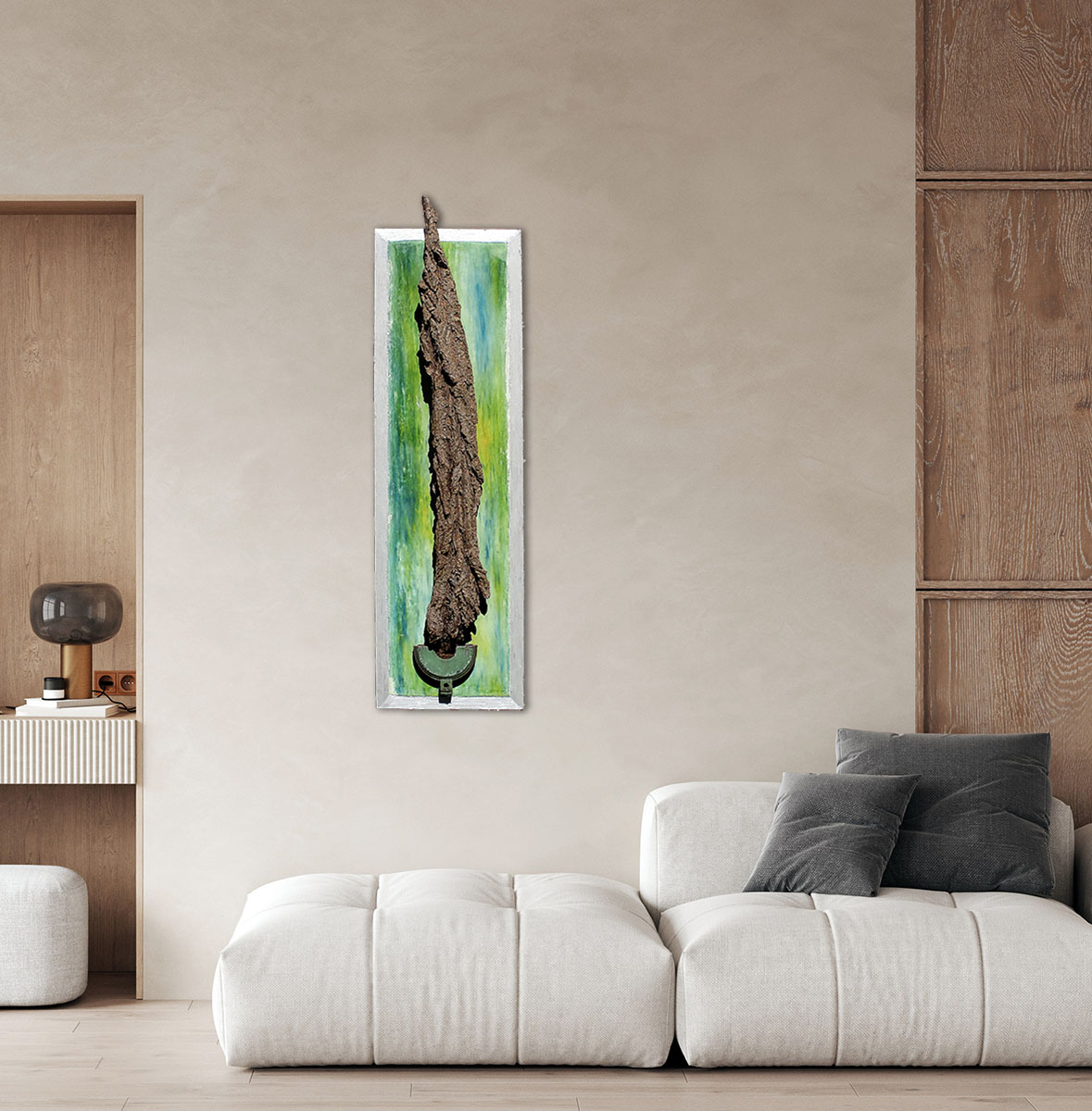 spiegel2025-01-20T10:16:26+01:00 „Fine Line“MIITELGROßE FORMATEBildskulptur, Baumrinde, Tadelakt, Acryl, Spachtel