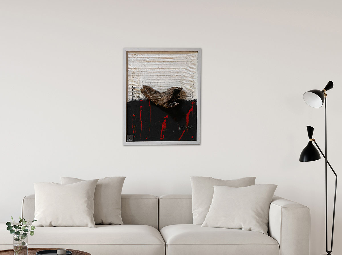 Treibholzwurzel aus Schottland, Spachteltechnik, Marmormehl, Acryl auf Leinwand